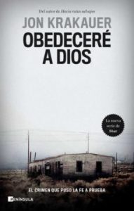 Jon Krakauer es un periodista norteamericano, conocido por tres libros llevados al cine: Hacia rutas salvajes sobre un joven aventurero, Mal de altura sobre el ascenso al Everest y Obedeceré a Dios, acerca de un brutal asesinato, cometido en 1984 por Dan y Ron Lafferty, dos fundamentalistas mormones, en el que fallecieron la cuñada de ambos, Brenda, y la hija de esta, aún un bebé.